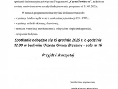 Aktualności 3.12.2025Spotkanie informacyjne dotyczące Programu „Czyste Powietrze”...Wójt Gminy Brzeziny zaprasza mieszkańców na spotkanie informacyjne poświęcone Programowi „Czyste Powietrze”, podczas którego... -