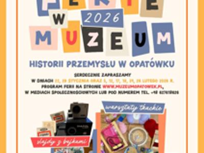 Aktualności 12.01.2026Ferie zimowe 2026 w Muzeum Historii Przemysłu w OpatówkuMuzeum Historii Przemysłu w Opatówku zaprasza dzieci na ferie zimowe 2026, podczas których przygotowano cykl spotkań edukacyjno-warsztatowych... -