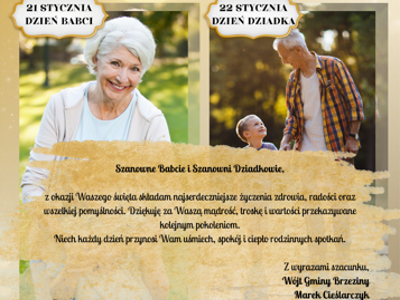 Aktualności 21.01.2026Życzenia z okazji Dnia Babci i DziadkaZ okazji Dnia Babci i Dziadka Wójt Gminy Brzeziny składa wszystkim Babciom i Dziadkom najserdeczniejsze życzenia zdrowia,... -