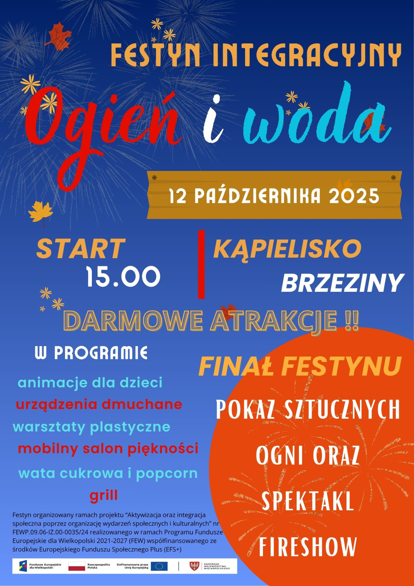 Festyn organizowany ramach projektu “Aktywizacja oraz integracja społeczna poprzez organizację wydarzeń społecznych i kulturalnych” nr FEWP.09.06-IZ.00-0035/24 realizowanego w ramach Programu Fundusze Europejskie dla Wielkopolski 2021-2027 (FEW) współfinansowanego ze środków Europejskiego Funduszu Społecznego Plus (EFS+).