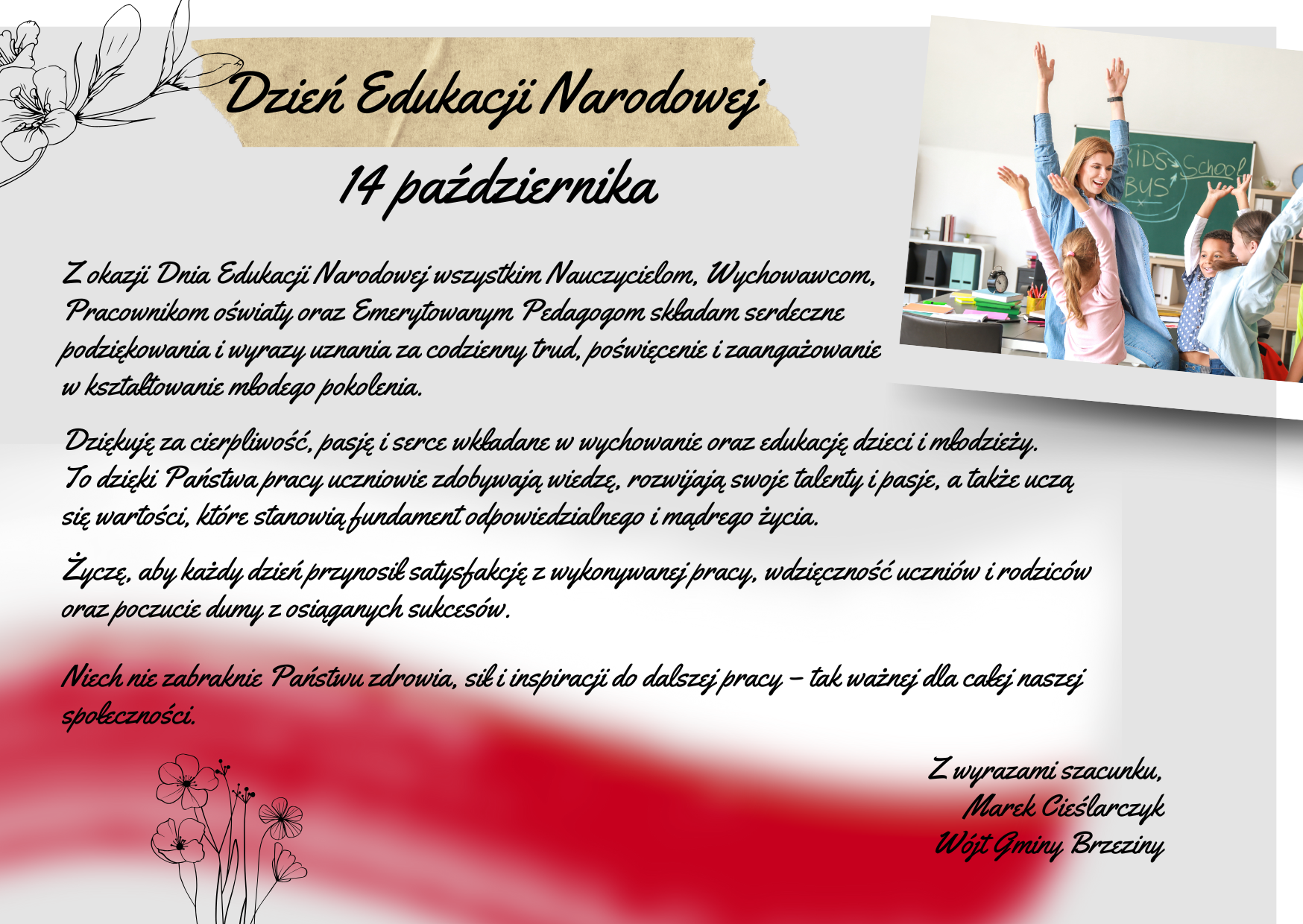 Dziś, 14 października, obchodzimy Dzień Edukacji Narodowej – święto wszystkich, którzy swoją pracą i zaangażowaniem tworzą przyszłość poprzez nauczanie, wychowanie i wspieranie młodego pokolenia.