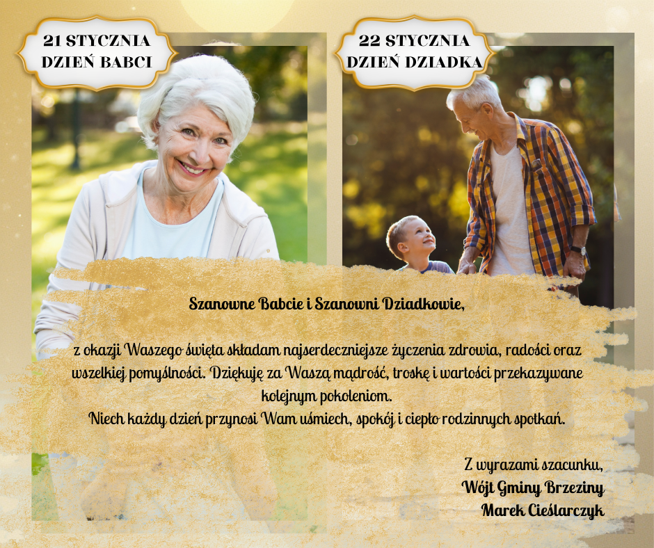 Z okazji Dnia Babci i Dziadka Wójt Gminy Brzeziny składa wszystkim Babciom i Dziadkom najserdeczniejsze życzenia zdrowia, radości oraz wszelkiej pomyślności.