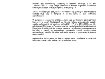 Zmiana siedziby II Urzędu Skarbowego w Kaliszu