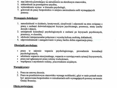 Gminny Ośrodek Pomocy Społecznej w Brzezinach poszukuje psychologa