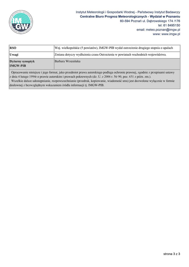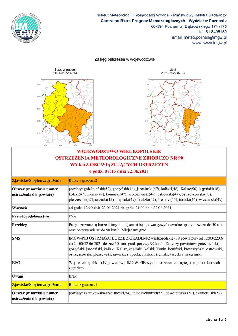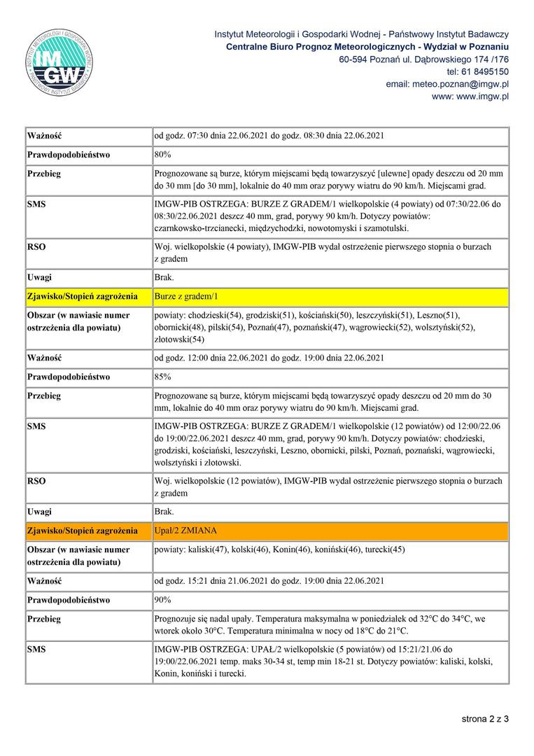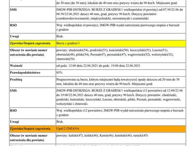 22.06.2021 r. ostrzeżenie meteorologiczne - upał oraz burze z gradem