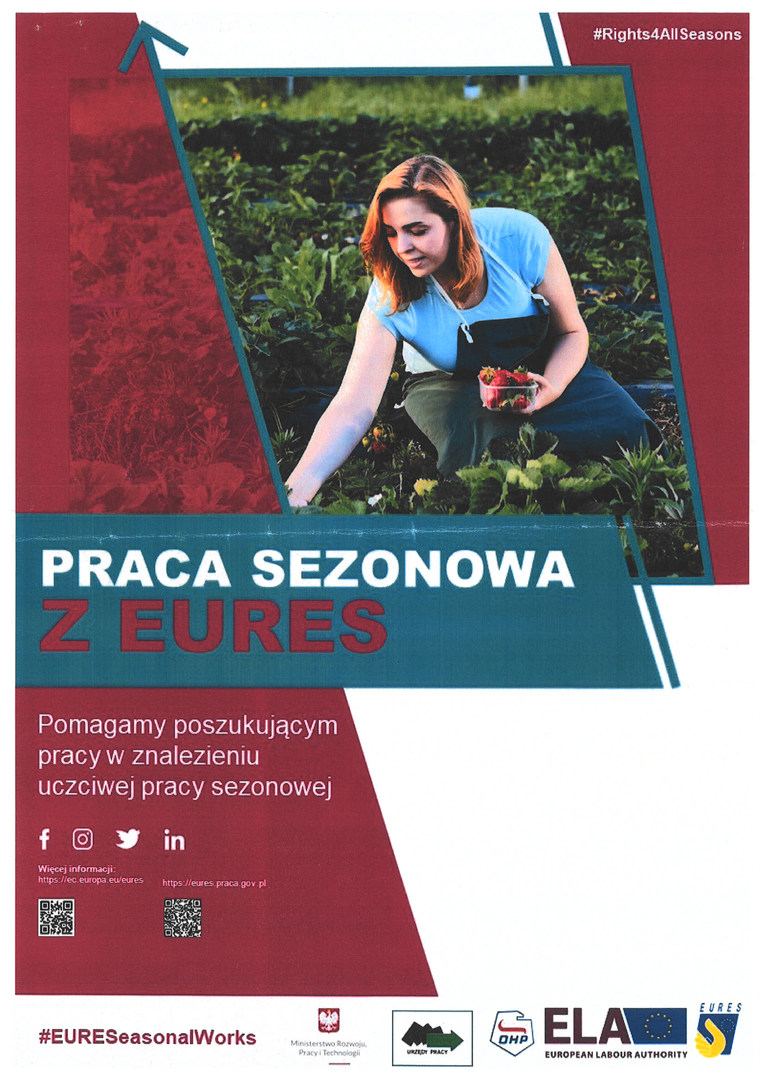 Powiatowy Urząd Pracy w Kaliszu informuje, że Europejska Sieć Służb Zatrudnienia – EURES prowadzi kampanię informacyjną nt. pracy sezonowej w UE w ramach ogólnoeuropejskiej kampanii informacyjnej koordynowanej przez Europejski Urząd ds. Pracy.