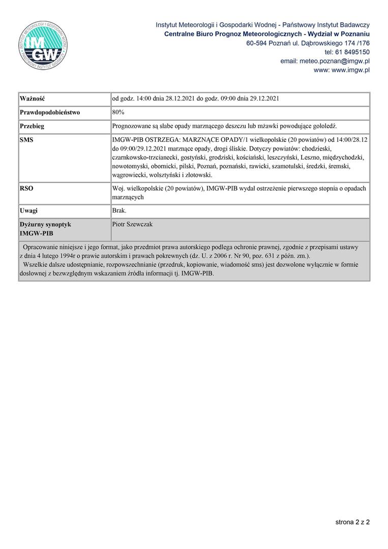 28.12.2021 - ostrzeżenie meteorologiczne...