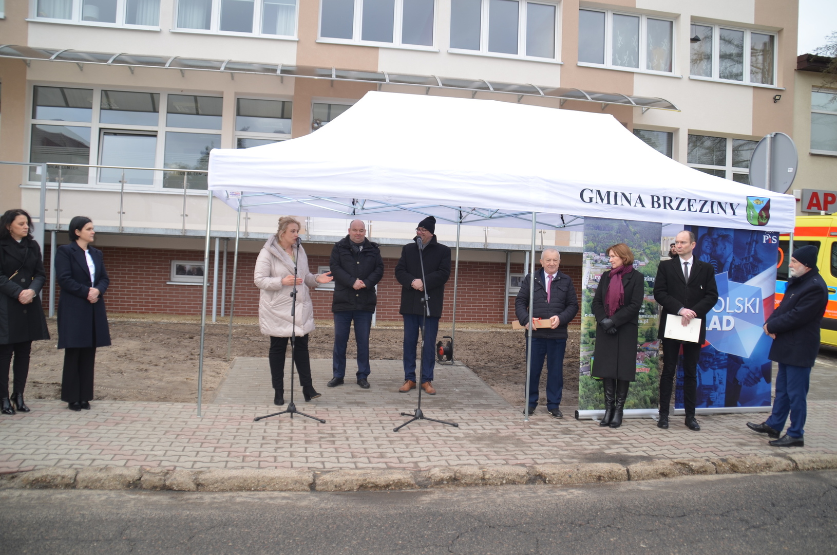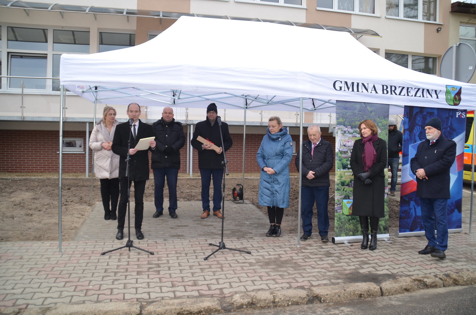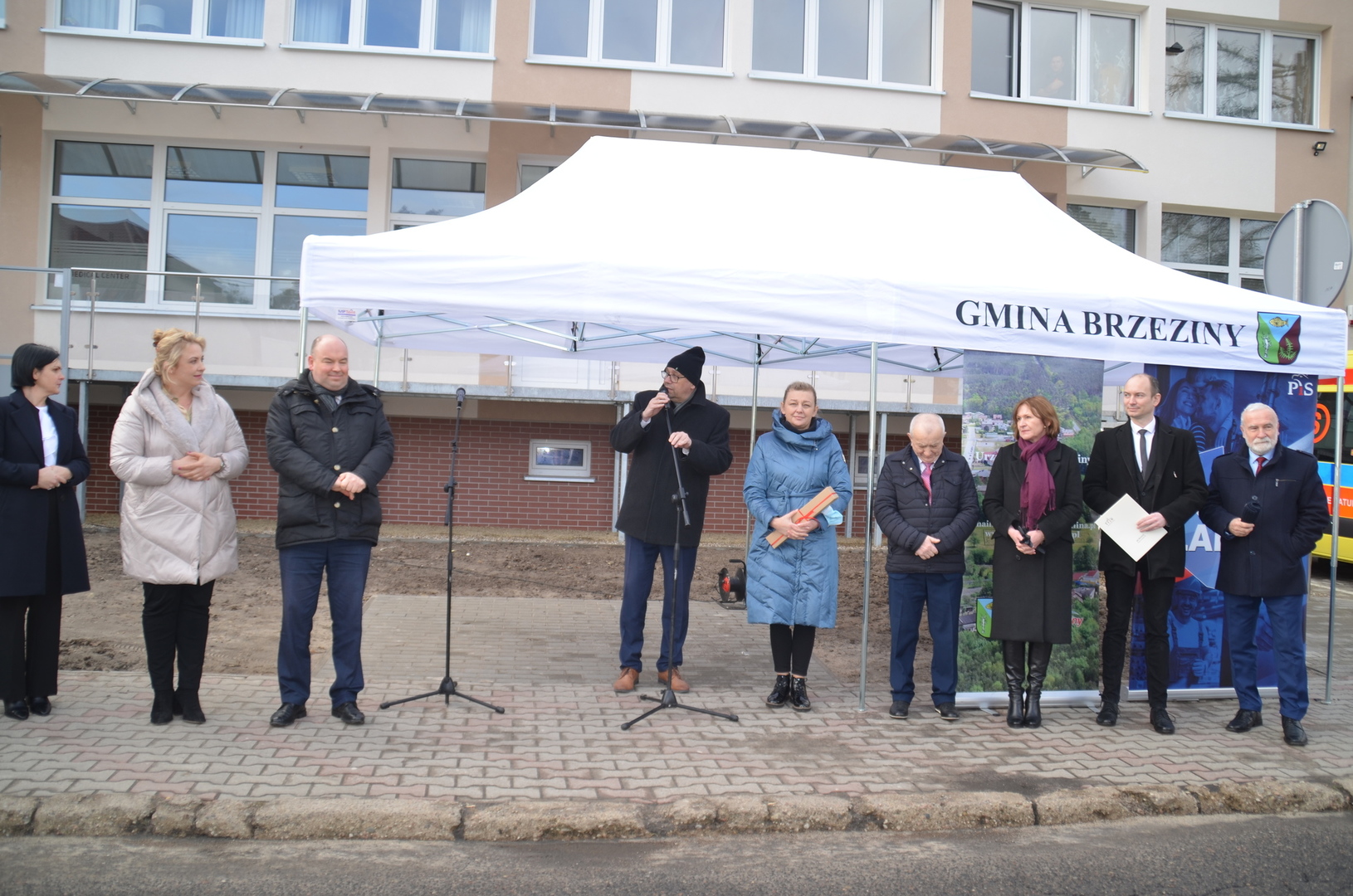 W dniu 03 lutego 2022 r. przed budynkiem Ośrodka Zdrowia w Brzezinach odbyło się spotkanie podsumowujące zrealizowane w 2021 roku inwestycje z udziałem dofinansowania rządowego.