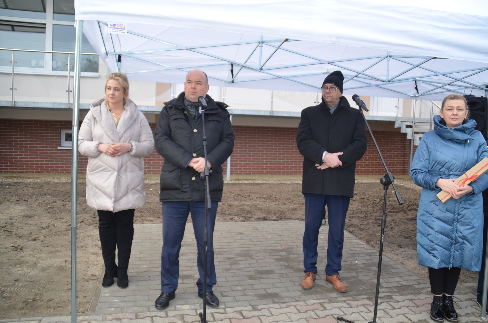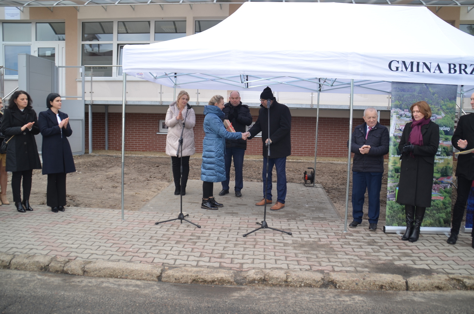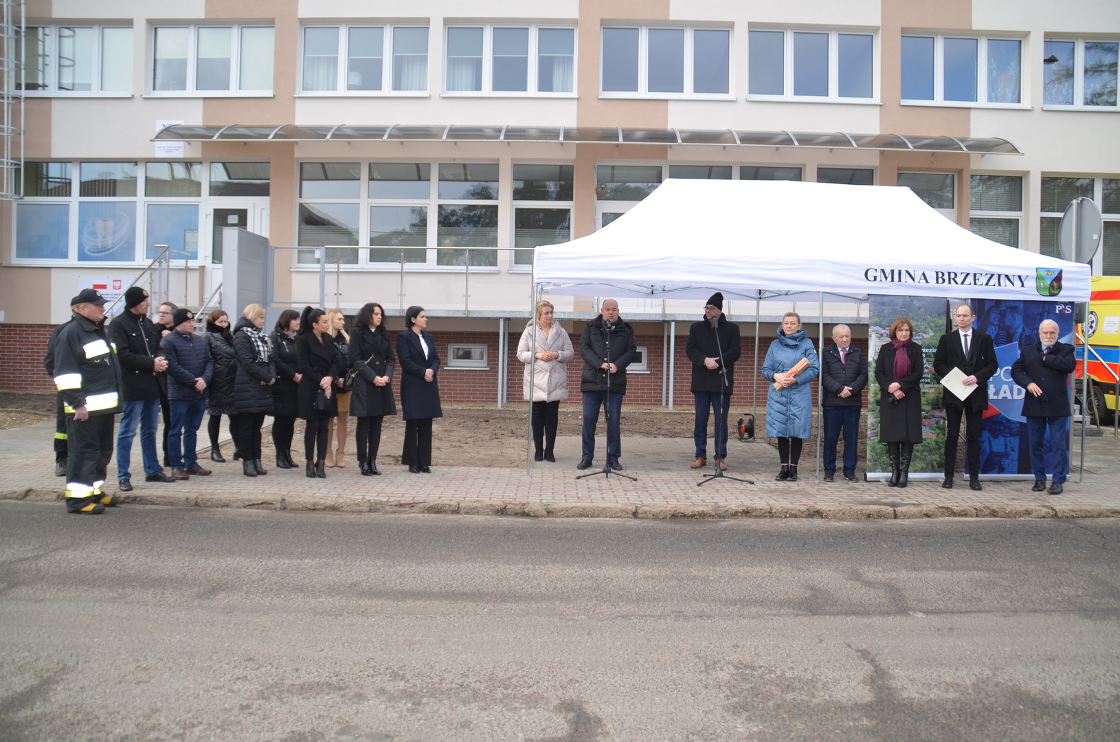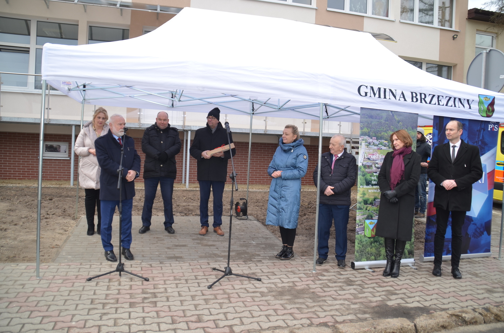 W dniu 03 lutego 2022 r. przed budynkiem Ośrodka Zdrowia w Brzezinach odbyło się spotkanie podsumowujące zrealizowane w 2021 roku inwestycje z udziałem dofinansowania rządowego.