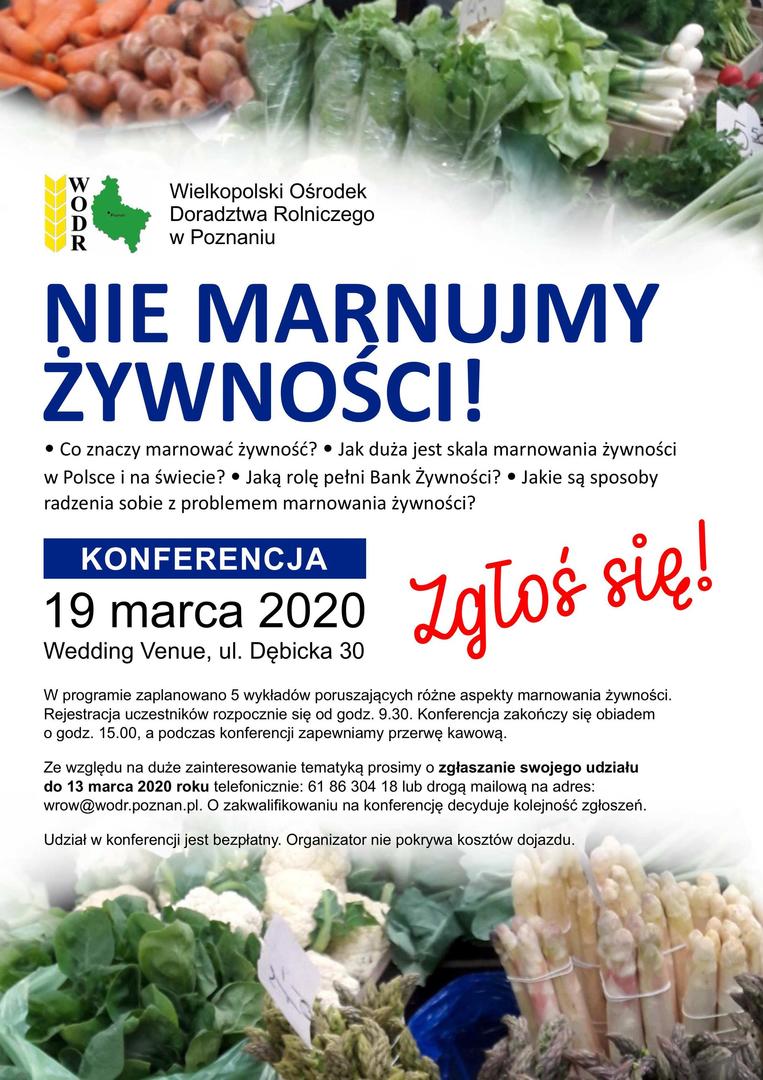 19 marca 2020 r. Dział Rozwoju Obszarów Wiejskich organizuje konferencję pt. "Nie marnujmy żywności!".