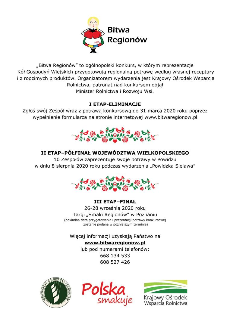 „Bitwa Regionów” to ogólnopolski konkurs, w którym reprezentacje Kół Gospodyń Wiejskich przygotowują regionalną potrawę według własnej receptury i z rodzimych produktów.