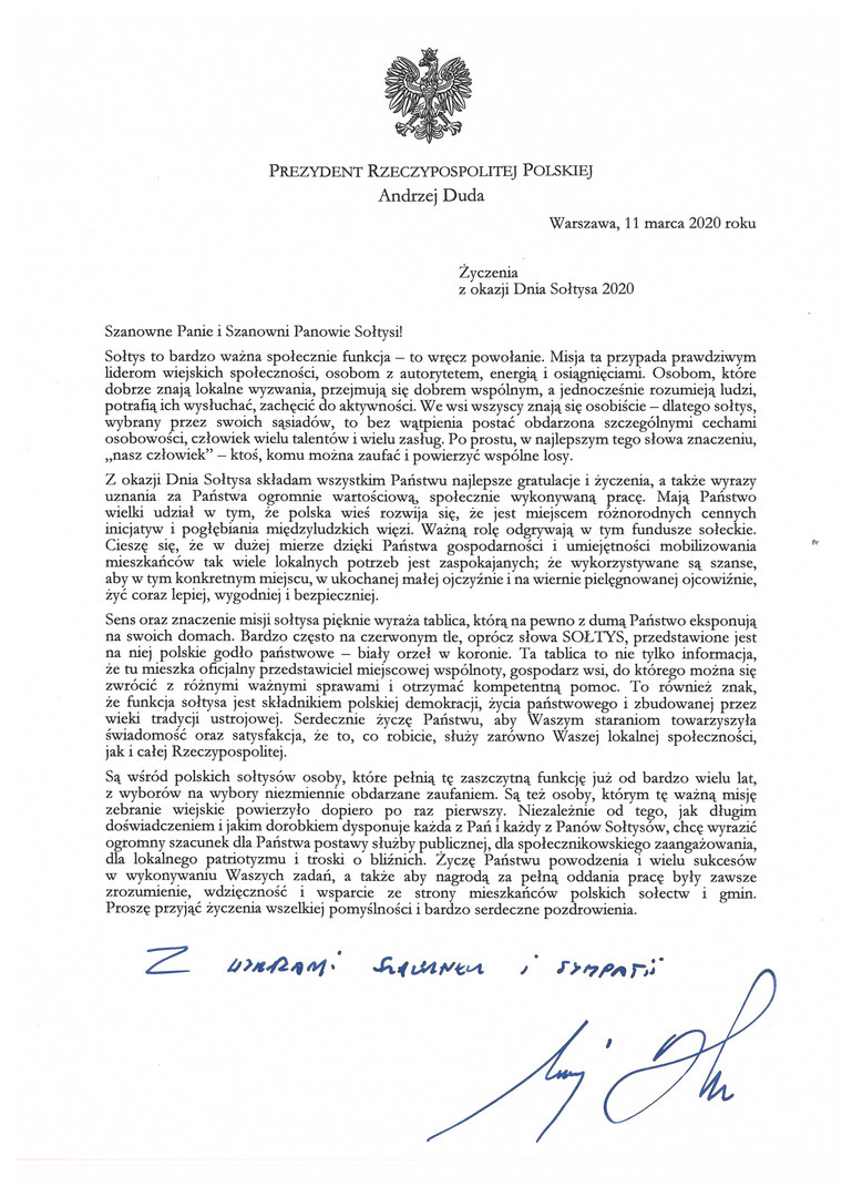 List Pana Prezydenta Rzeczypospolitej Polskiej do Sołtysów