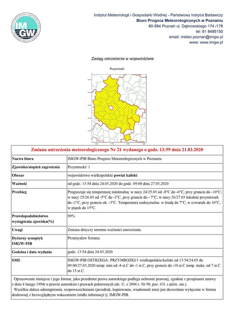 Ostrzeżenie meteorologiczne o wystąpieniu przymrozków